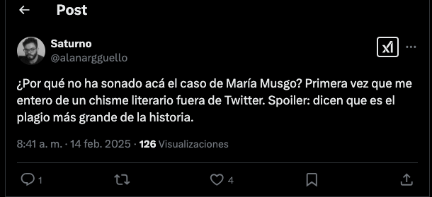 - De investigación a chisme mediático (todavía no he respondido si es María Musgo el mayor caso de plagio de las letras costarricenses, 14 de febrero de 2025):