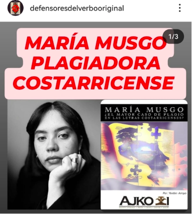 Morales Trigueros, J. P. (14 de febrero de 2025). "El plagio del lenguaje: el caso de la literatura costarricense contra una autora llamada María Musgo". Abecedaria Editoras. https://abecedariaeditoras.org/el_plagio_del_lenguaje/?fbclid=IwY2xjawInNJNleHRuA2FlbQIxMQABHXxg3EMSmToATnemsM-zVLS5LPr-P_JQCXuzI2mpDx3F2__vCeXRJ6tdgQ_aem_bKaOWugADq4i45oHEvwxJA