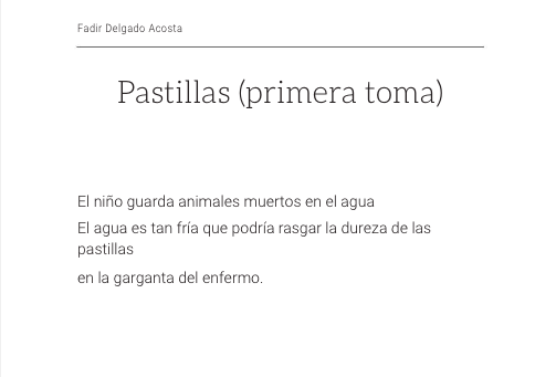 “Pastillas (primera toma)” (p. 11). |