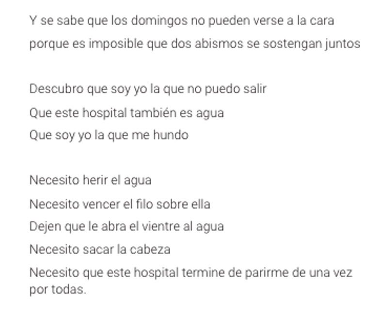 Esto le permite agregar, más adelante, como pensamiento mediático suyo que permite notar un problema de pobreza lectora: “Bien merecido fue ese reconocimiento que le hizo Colombia al concederle el Premio Nacional en 2023 […] Un reconocimiento que dicho sea de paso, es el más grande que puede recibir en Colombia un poeta o una poeta” y termina citando un texto que aparece en Cama de hospital vista desde abajo (Premio UNA PALABRA, Costa Rica) y en La temperatura exacta del miedo (Premio TIFLOS, España) con títulos distintos.